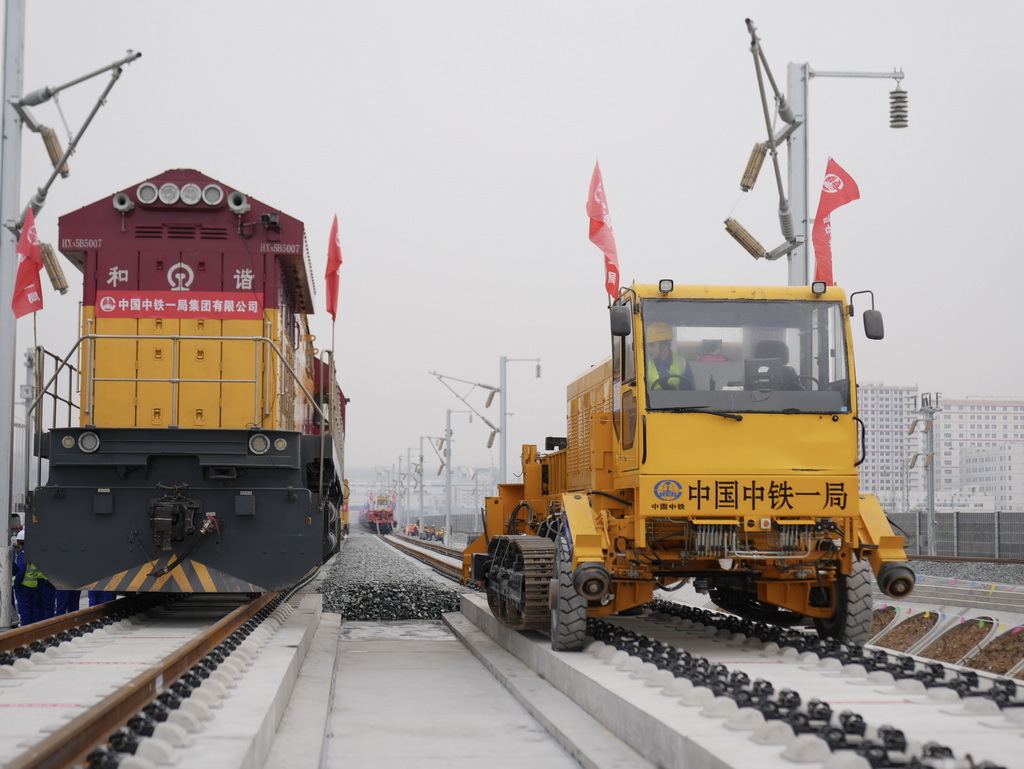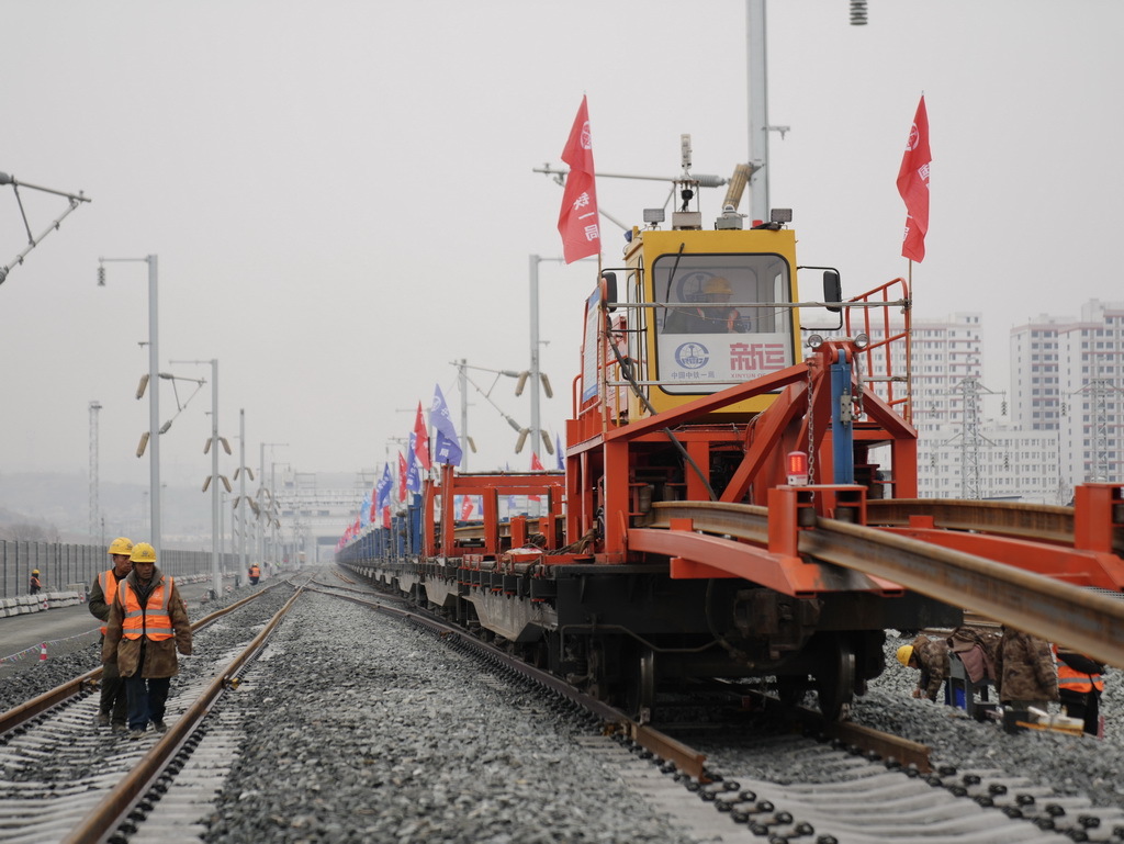2月6日,中铁一局施工人员在西康高铁安康西站段铺轨现场作业。2月6日,在西康高铁建设现场安康西站段,随着最后一对钢轨精准落位并完成锁定,由西成客专陕西公司建设、中铁一局施工的西安至安康高速铁路全线铺轨完成。西康高铁是国家中长期铁路网规划“八纵八横”高铁通道中包(银)海通道、京昆通道的重要组成部分,设计时速350公里。建成通车后,西安至安康的铁路运行时间将由现在的3小时左右缩短至1小时以内,将大幅缩短关中平原城市群与陕南秦巴山区的时空距离,对促进地方经济发展具有重要意义。新华社记者